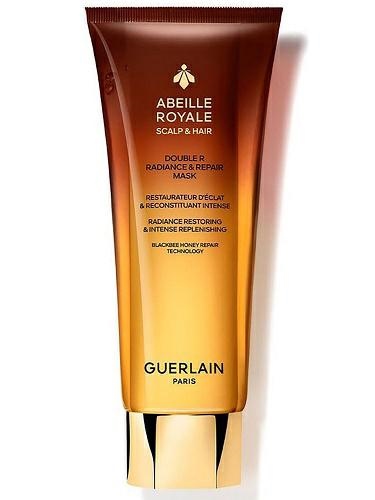 IL DOPPIO SAVOIR-FAIRE PER LA GIOVINEZZA VISIBILE DEL CAPELLO: BRILLANTEZZA E RIPARAZIONE. Double R Radiance & Repair Mask combina il potere di due maschere ad alte performance in un doppio flacone Guerlain inedito per ripristinare la brillantezza del capello e riparare intensamente la fibra capillare. Giorno dopo giorno, il cuoio capelluto è rinforzato, la fibra è nutrita e riparata a lungo. La brillantezza dei capelli è amplificata. I capelli sono visibilmente più forti, setosi, alla vista così come al tatto. La doppia texture esclusiva sviluppata secondo l'arte della formulazione Guerlain è composta per il 95% da ingredienti di origine naturale¹.