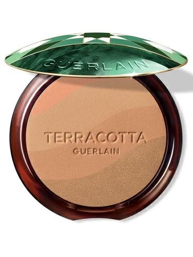 Icona imprescindibile del make-up Guerlain, la poudre bronzante dall'effetto bonne mine naturale numero uno in Europa¹ continua a reinventarsi con un'edizione limitata che interessa sia il design sia l'emblematico boîtier: Terracotta Golden Dunes. Questa nuova collezione esclusiva reinterpreta il mito originale della poudre Terracotta, lanciata dalla Maison Guerlain nel 1984: catturare la miriade di sfumature delle dune del deserto marocchino, illuminate dai raggi del sole. È stata proprio l'immagine del sole che scolpisce il rilievo delle dune a ispirare il design inedito di Terracotta Golden Dunes. L'armonia unica di questa collezione è racchiusa in tre nuovi boîtier rivisitati, ma sempre ricaricabili. Guerlain ha collaborato con gli atelier Aït Manos per creare questo trio di scrigni esclusivi. Portando avanti un savoir-faire ancestrale, questa manifattura marocchina si impegna a modernizzare una straordinaria tecnica artigianale del Marocco: lo zellige, un mosaico ornamentale tradizionale composto da maioliche colorate. Ognuno di questi boîtier ricaricabili evoca un deserto marocchino: Blue Daklha: un blu lapislazzuli messo in risalto da un motivo geometrico rosso, in una composizione punteggiata di azzurro e bianco. Red Zagora: il contrasto tra il rosso granato e un duo di gialli viene esaltato da un motivo che assume la forma di un sole stilizzato. Green Agafay: il colore della giada domina questo decoro caratterizzato da un motivo a stella con sfumature di verde.