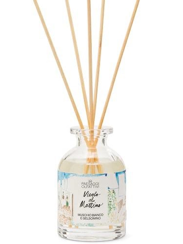 Con Vicolo al Mattino è come ritrovarsi a passeggiare in una stradina del centro storico di un paese pugliese nelle prime ore del giorno. Le note di scorza di limone e ciclamino ti accolgono con una freschezza rinvigorente. Nel cuore, il gelsomino, la violetta e il geranio si intrecciano delicatamente con l’aroma speziato dei fiori di garofano. Le note di fondo di muschi e vaniglia chiudono la fragranza con una scia calda e persistente che avvolge l’ambiente.
